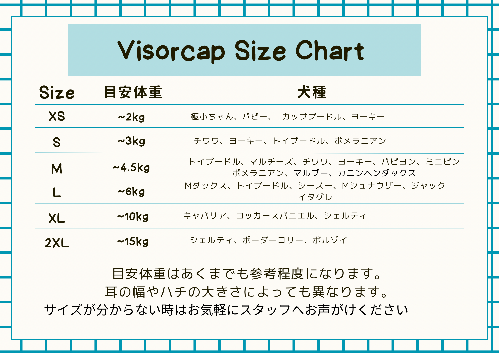 愛犬に合ったサイズをお選びください