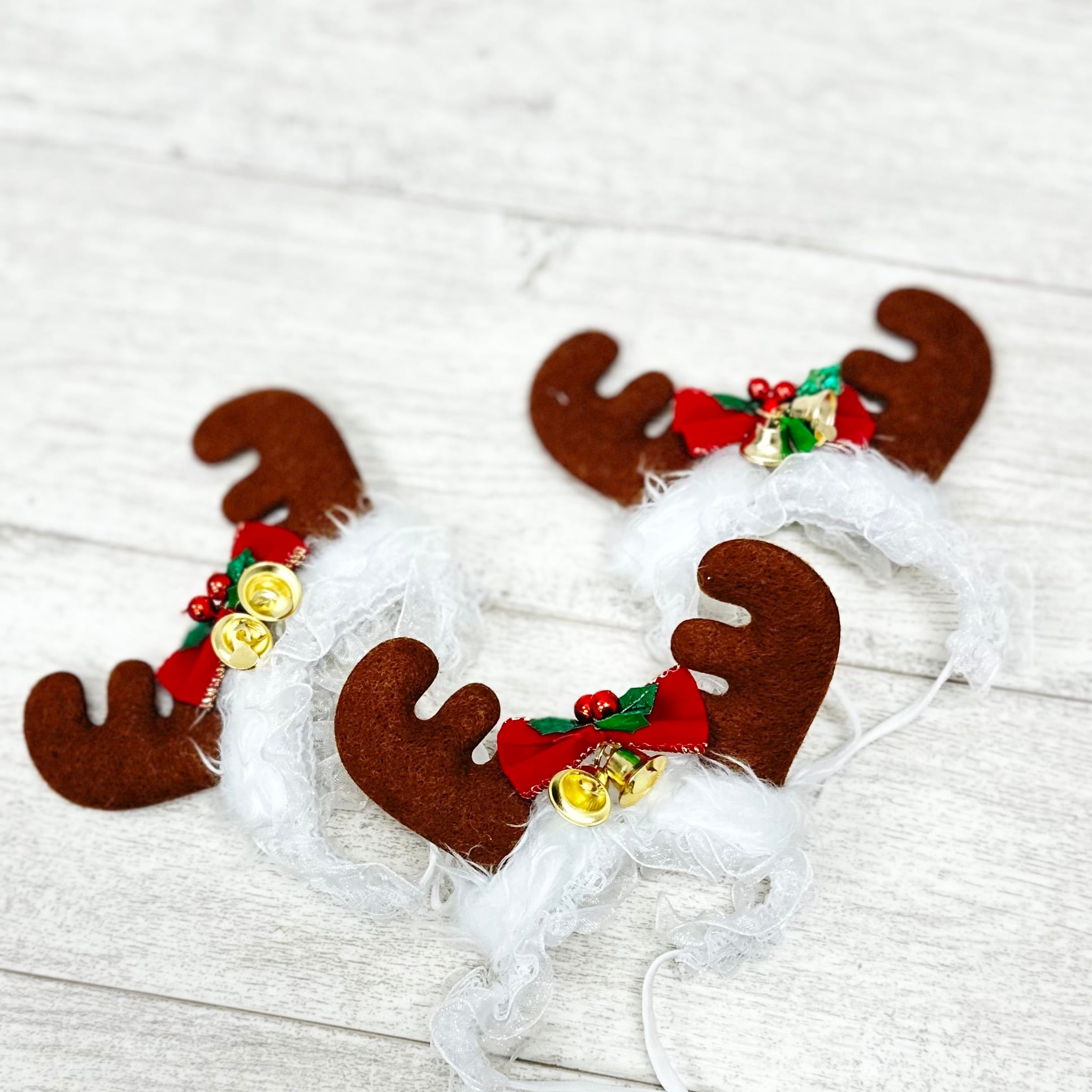 トナカイの角をモチーフにした、愛犬のためのクリスマスヘッドドレス。